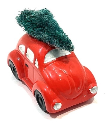- AUTO WITH TREE # 50555 RED VOLKSWAGEN BUG DEPT 56 RETIRED SNOW VILLAGE ACCESSORY