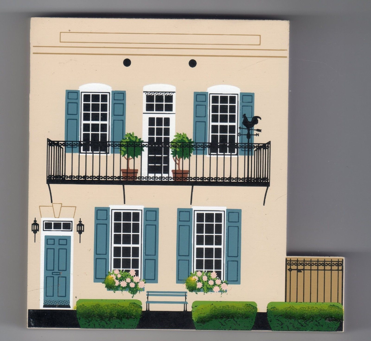 Each house is made of solid wood construction with screen printing and hand-painted shrubbery, greenery,