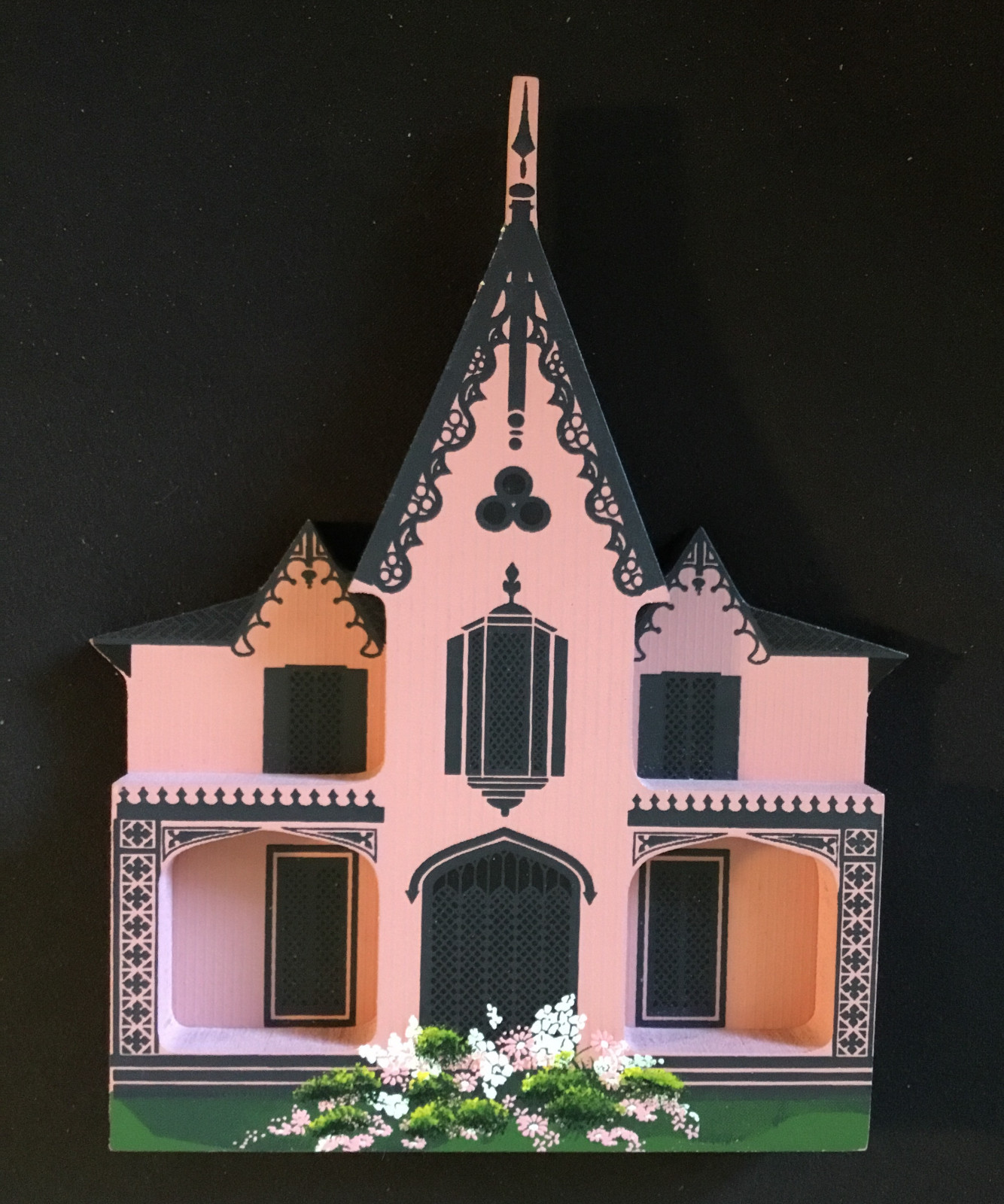 Each house is detailed to enhance the historic architecture using three-dimensional, dual-level construction. Each house is made of solid wood construction with screen printing and hand-painted shrubbery, greenery, flowers and detail. Interesting historical facts about the landmark are screen printed on the reverse side. The Hidden Key symbol identifies genuine Shelia's miniature house historic collectible.