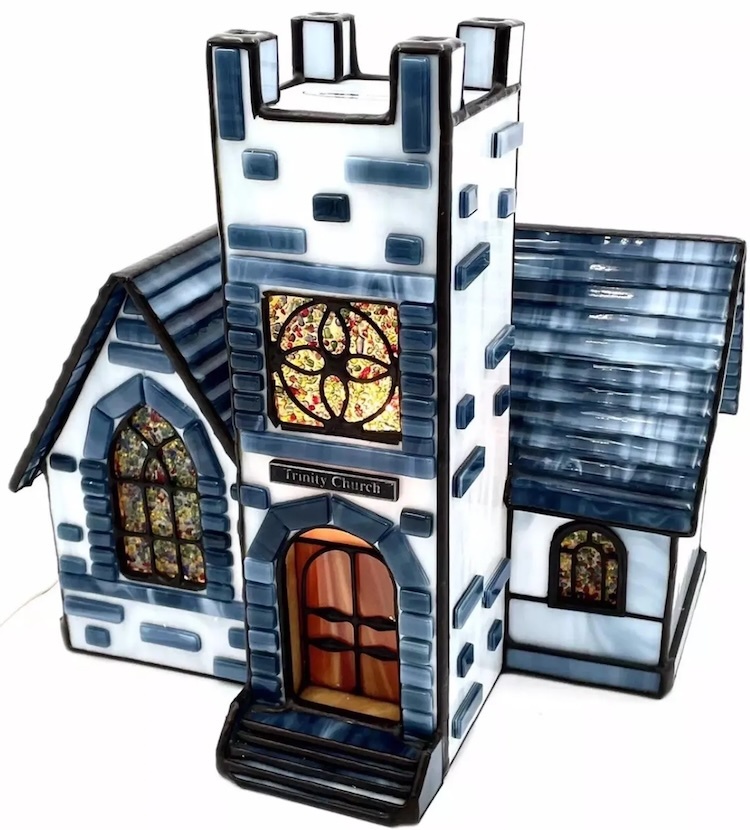 - TRINITY CHURCH # 11511 Stained Glass Lighted House with Box Vitreville Stained Glass RETIRED FORMA VITRUM