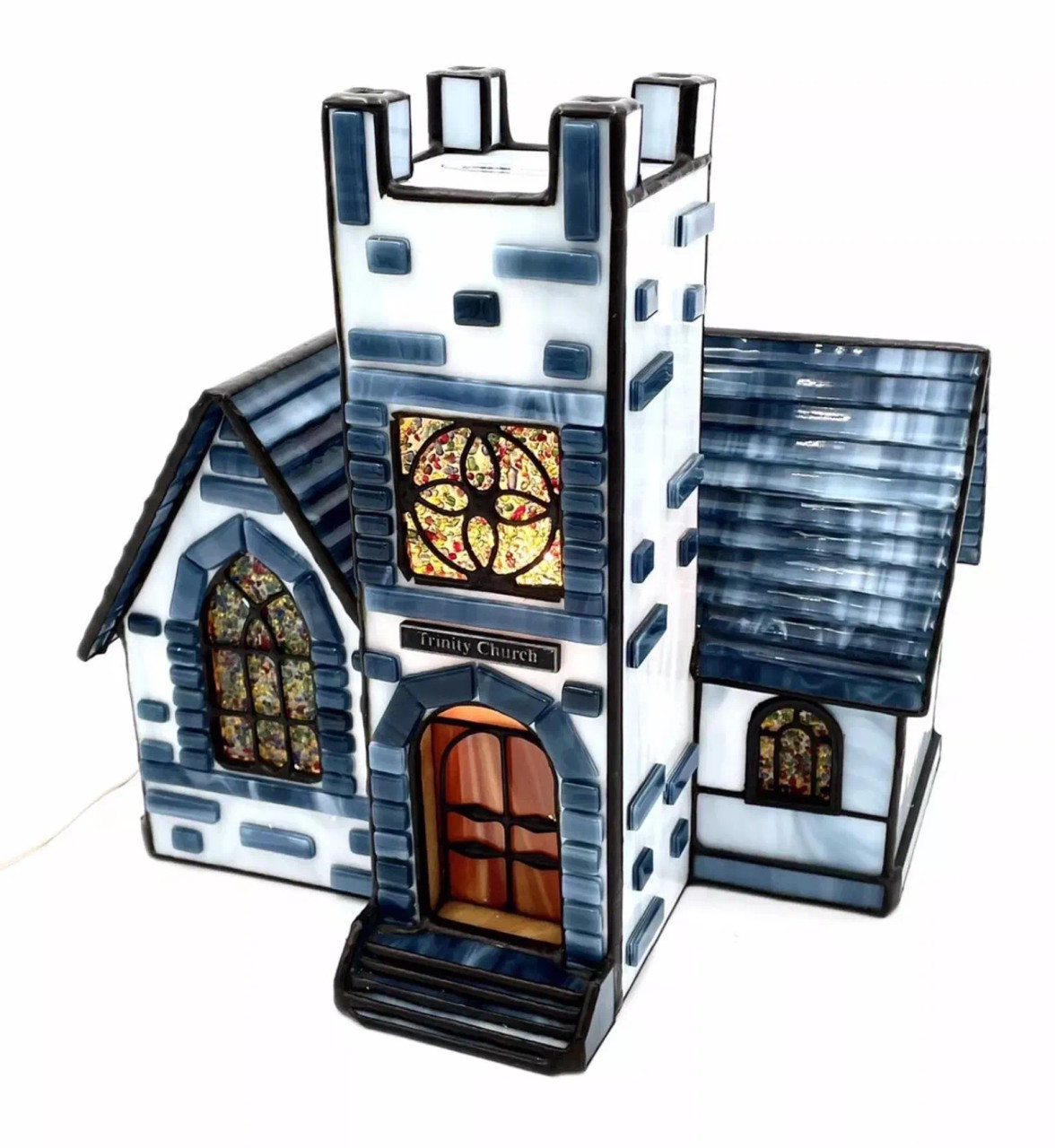 - TRINITY CHURCH # 11511 Stained Glass Lighted House with Box Vitreville Stained Glass RETIRED FORMA VITRUM